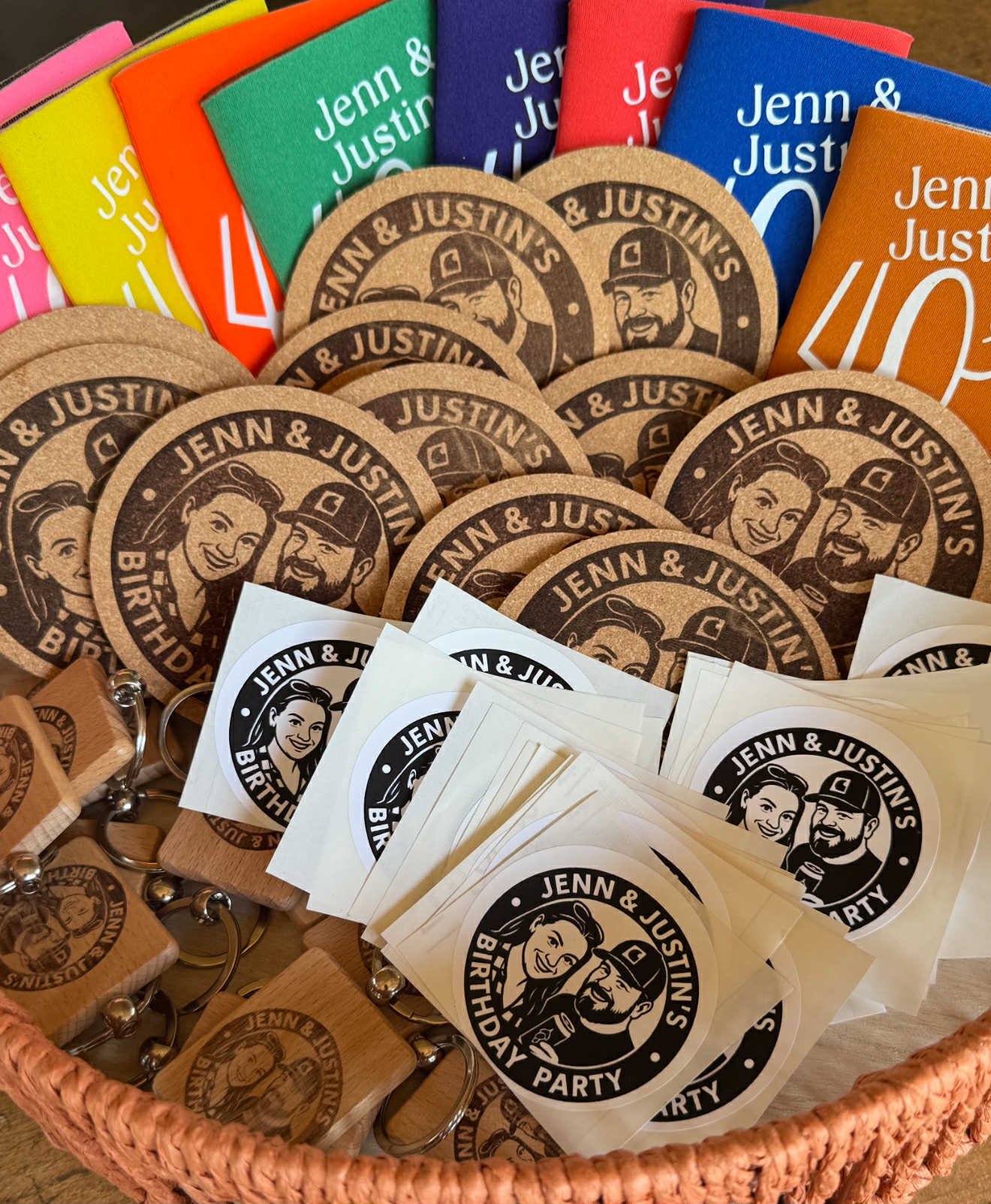 Take your celebration to the next level with a one-of-a-kind custom character logo designed to match your party theme. Whether it’s a birthday, wedding, retirement, fundraiser, or special event, we’ll create a personalized character that captures the spirit of your occasion and makes your décor, favors, and invitations truly unforgettable.