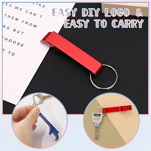 Add a personal touch to a practical everyday essential! Our custom laser-engraved bottle opener keychains are the perfect blend of function and personalization. Crafted from durable aluminum, each opener is lightweight yet strong—built to last on your keyring or cooler bag.